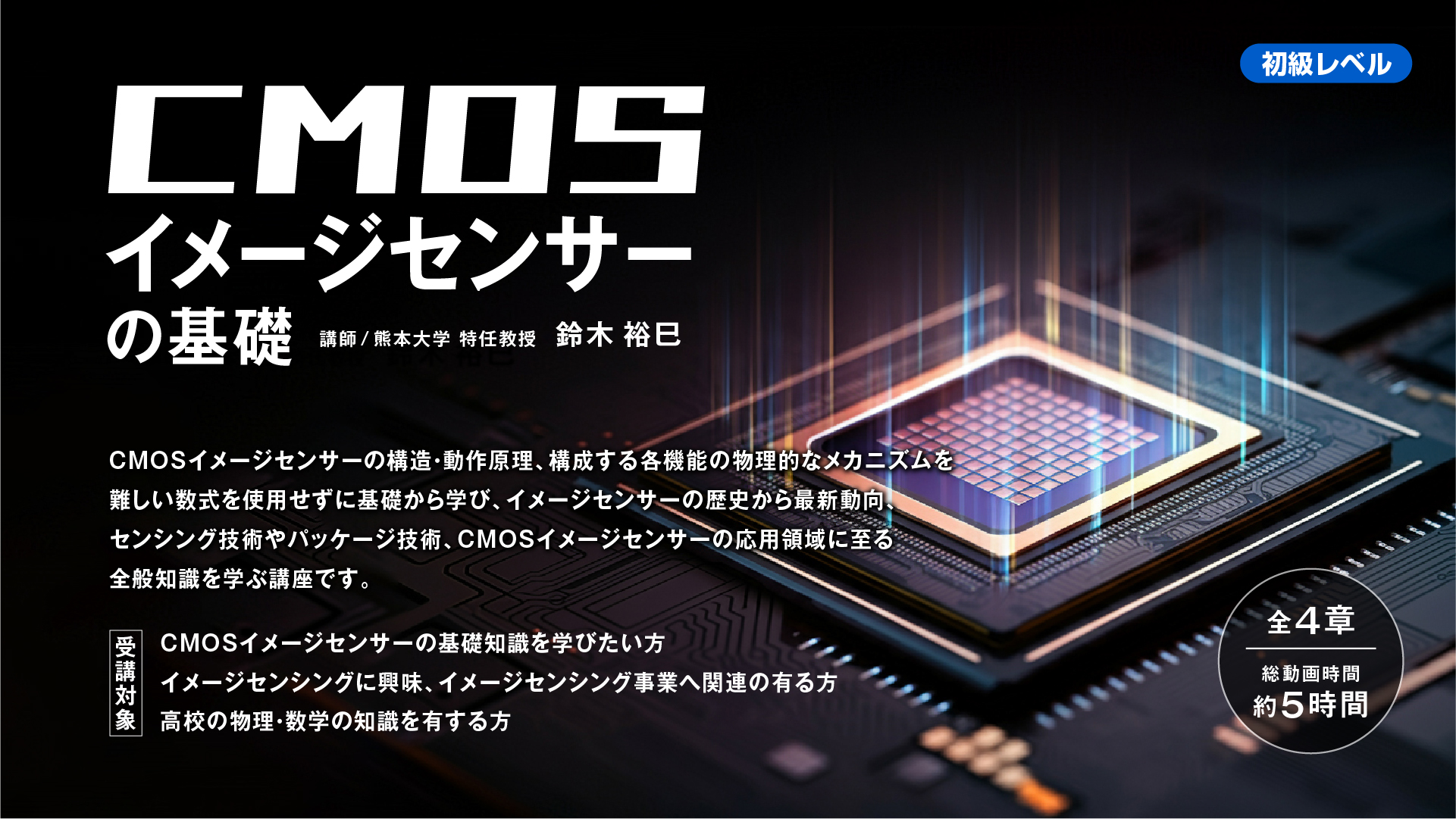CMOSイメージセンサーの構造・動作原理、構成する各機能の物理的なメカニズムを難しい数式を使用せずに基礎から学び、イメージセンサーの歴史から最新動向、センシング技術やパッケージ技術、 CMOSイメージセンサーの応用領域に至る全般知識を学ぶ講座です。