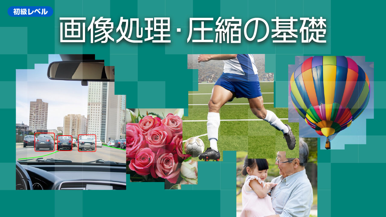 画像がコンピュータ上でどのように表現されているかを知り、さらにJPEG、MPEGの圧縮技術の概要と実際に使われている規格の状況を学び、最後に車載カメラ応用での距離計測、物体検出、画像合成の事例を紹介します。